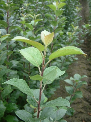Its tree size ranges between M9 and MM106; it yields crops early; but it is later M9 rootstock. Establishing a support system is beneficial in terms of early cropping, growth control and prevention of tree inclination due to excessive crops. It is vulnerable to root rot. Excessive irrigation should be avoided. It is vulnerable to fire blight disease, woolly aphid and powdery mildew. It is more resistant to cold in comparison with M9 rootstock.